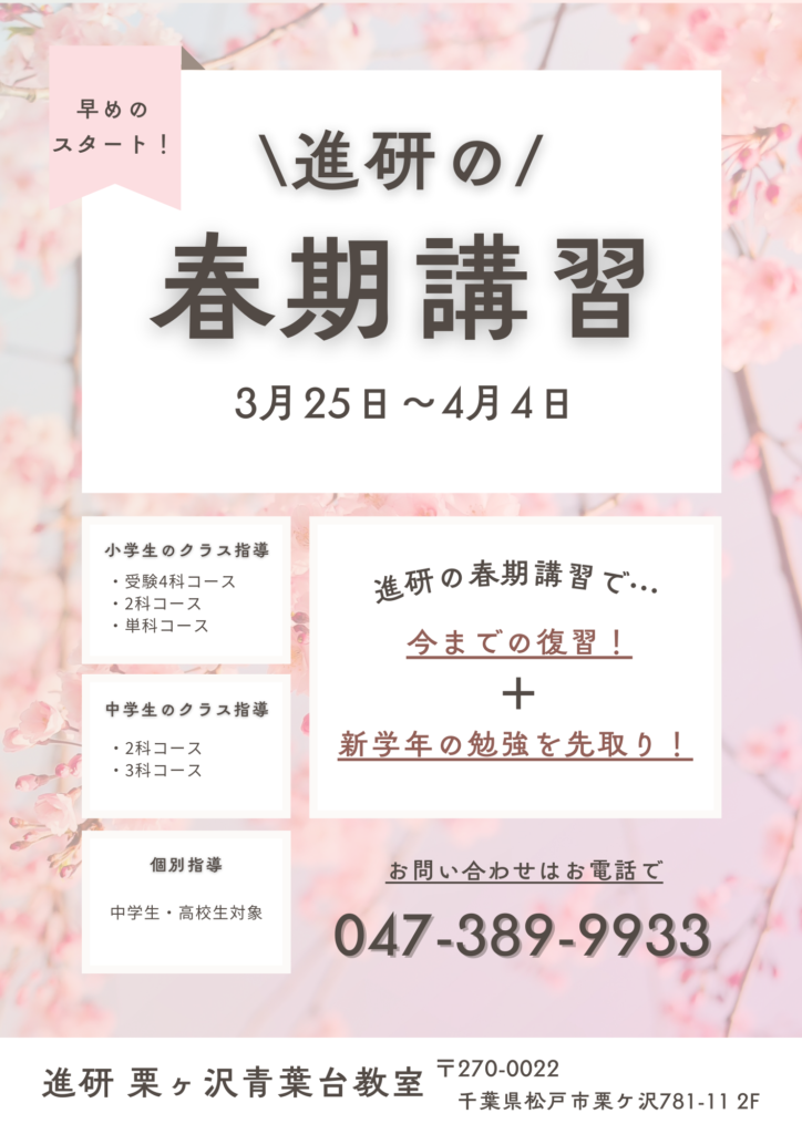 🌸 新年度塾生募集(無料体験受付中)